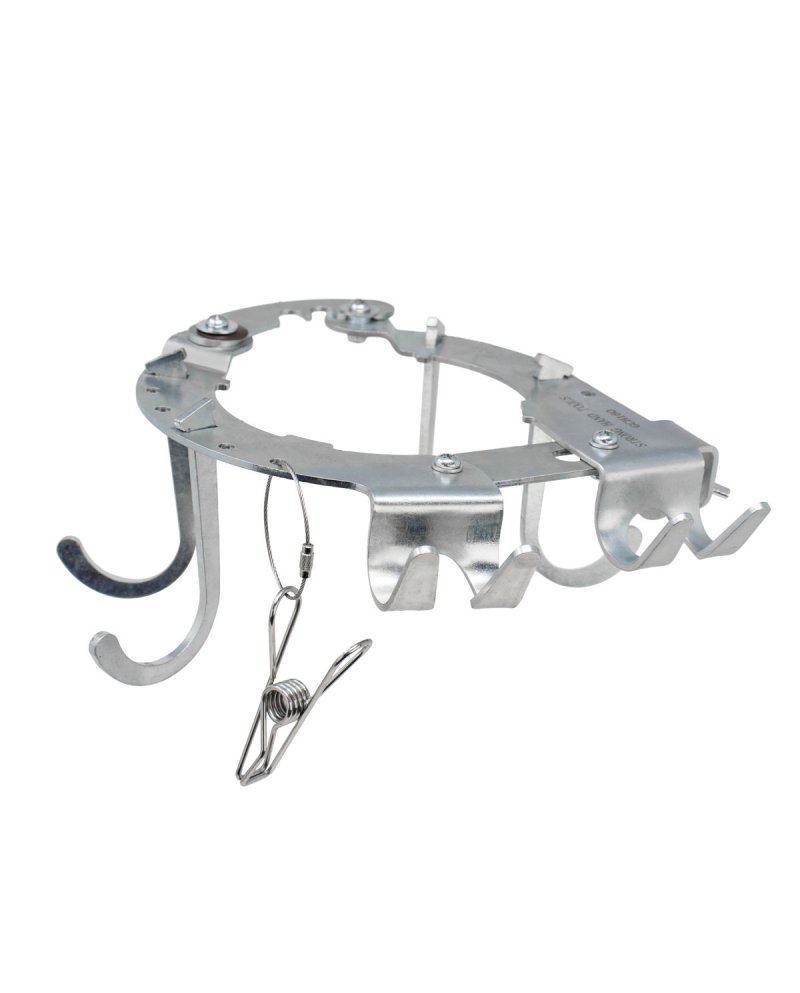 Adaptador para suporte de garrafas. Abertura ajustável para encaixar em diferentes diâmetros das garrafas. Os parafusos de ajuste mantêm o adaptador seguro. Não há necessidade de remover válvulas ou mangueiras, quando é necessário ajustar o adaptador.