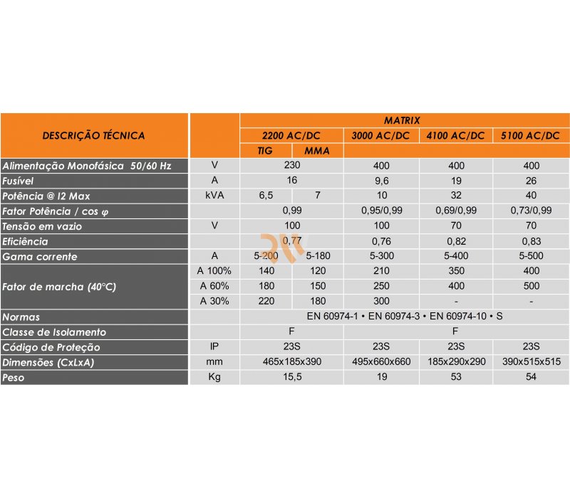 - Assentes na mais recente tecnologia inverter IGBT, os geradores TIG com escorvamento do arco a alta frequência da série MATRIX possuem um painel digital inovador para o controlo total de todos os parâmetros de soldadura. As excelentes características técnicas destas soldadoras,ombinadas o controlo digital de elevada tecnologia, permitem uma soldadura TIG de ótima qualidade, sendo adequados para as aplicações industriais e de manutenção mais severas. A série MATRIX AC/DC, com elevada tcnologia, robusta e de fácil utilização, pode ser utilizada para