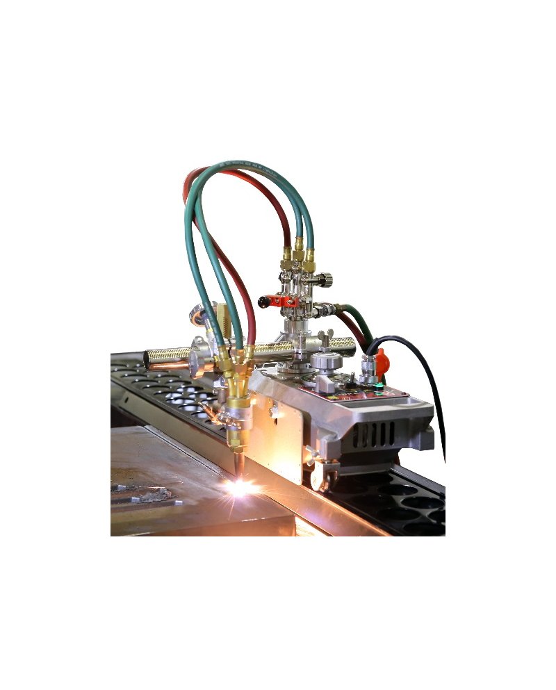 TRATOR DE CORTE E SOLDADURA HK 12 MAX3: Equipamento, cujas funções podem ser controladas a partir do botão de avanço, recuo, reverso, alavanca e botões de controlo de velocidade. Possui lâminas de corte oxi-gás com um sistema de guia exclusivo, com umcorte limpo, preciso e suave. Possui carris entrelaçados de 1,8m de comprimento para corte reto. É facilmente utilizado para soldadura automática e de corte, fornecendo a tocha MIG / MAG ou a adaptação da tocha de corte plasma. Pode cortar até 600mm despessura, aquando da utilização de tochas especiais.
