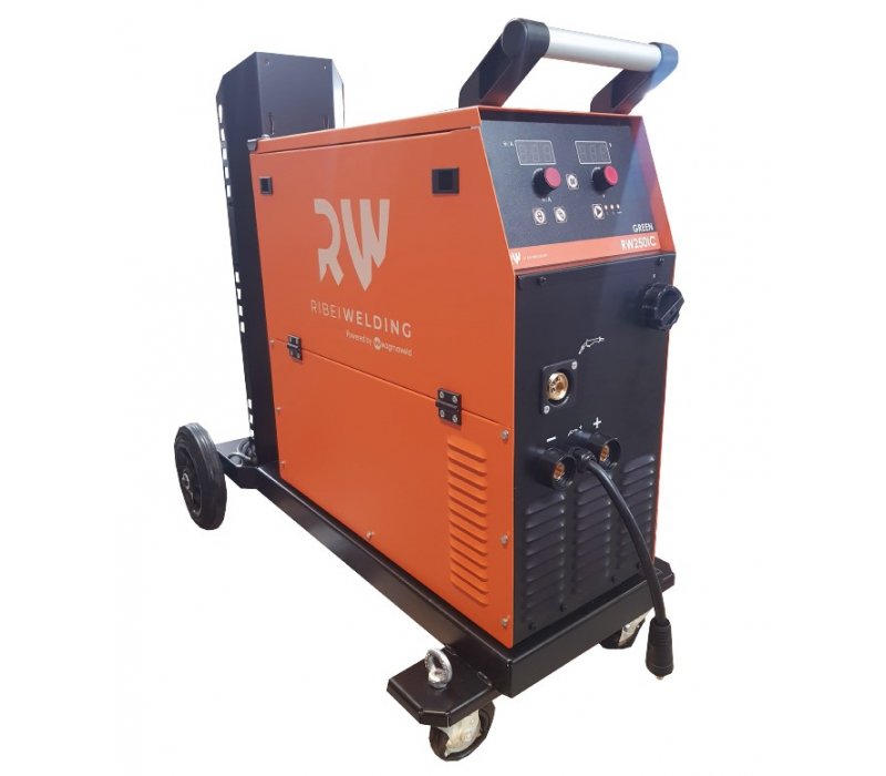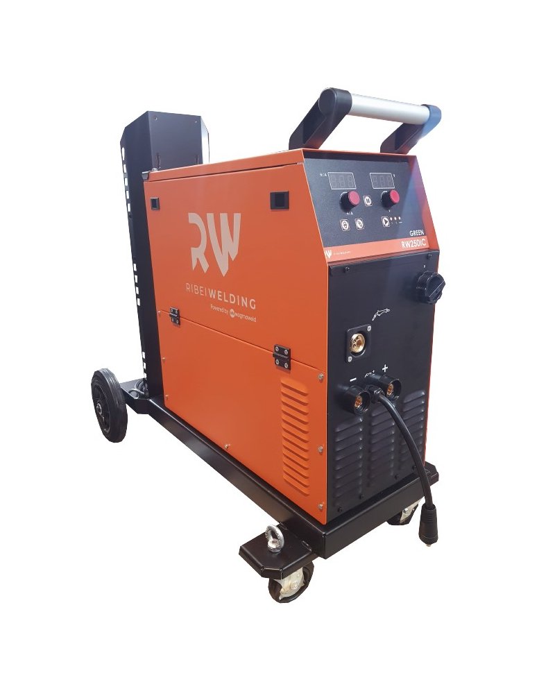 Equipamento com excelentes características de soldadura com todos os tipos de fio sólido e tubular. Existem bobines de 200, 270 e 300mm de diâmetro integrados na máquina e sistemas de alimentação de fio com entrada de fio diferente para o tambor. O sistema de tração nas quatro rodas permite uma boa soldadura sem deformar os fios macios. A tensão de soldadura e a taxa de alimentação do fio pode ser ajustada através do painel frontal. A tensão de soldadura e a corrente podem ser monitorizadas através do display digital. Os parâmetros de soldadura ideais podem ser selecionados no painel frontal. É refrigerado por um ventilador e tem proteção contra superaquecimento. Inclui grampo de aterramento, cabo elétrico e mangueira de gás. Apresenta uma longa vida útil, com prateleira forte feita de chapa de aço de 1,2 mm revestida com tinta eletrostática.