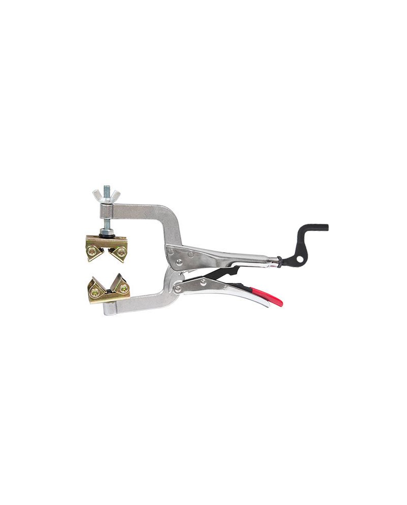 Alicate para tubos com V-pads ajustáveis, que permite segurar tubos de vários tamanhos com firmeza e precisão. Permite fixar também peças em ângulos de 0º e 45ºC.