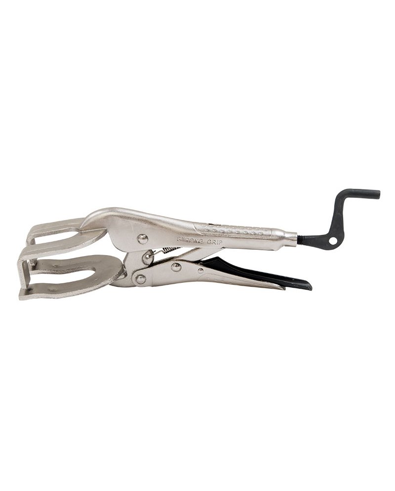Alicate com abertura em U, com fecho e ajuste rápido. Apresenta uma superfície dentada para maior poder de aderência, durabilidade e pressão. Marcas de aperto anti deslizante na pega superior einferior para um aperto fácil e preciso.