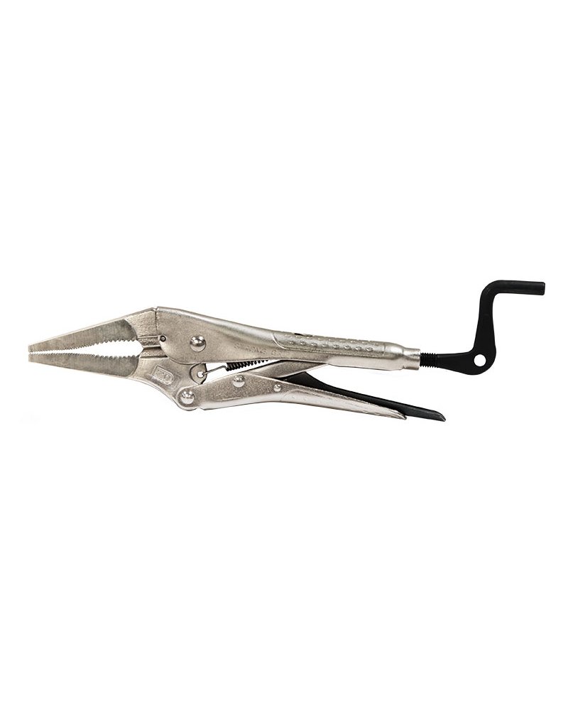Alicate de nariz comprido, com fecho e ajuste rápido. Apresenta uma superfície dentada para maior poder de aderência, durabilidade e pressão. Marcas de aperto anti deslizante na pega superior einferior para um aperto fácil e preciso. A ponta reta e longa permite o acesso a áreas apertadas, estreitas ou de difícil acesso para fixação e aperto de parafusos.