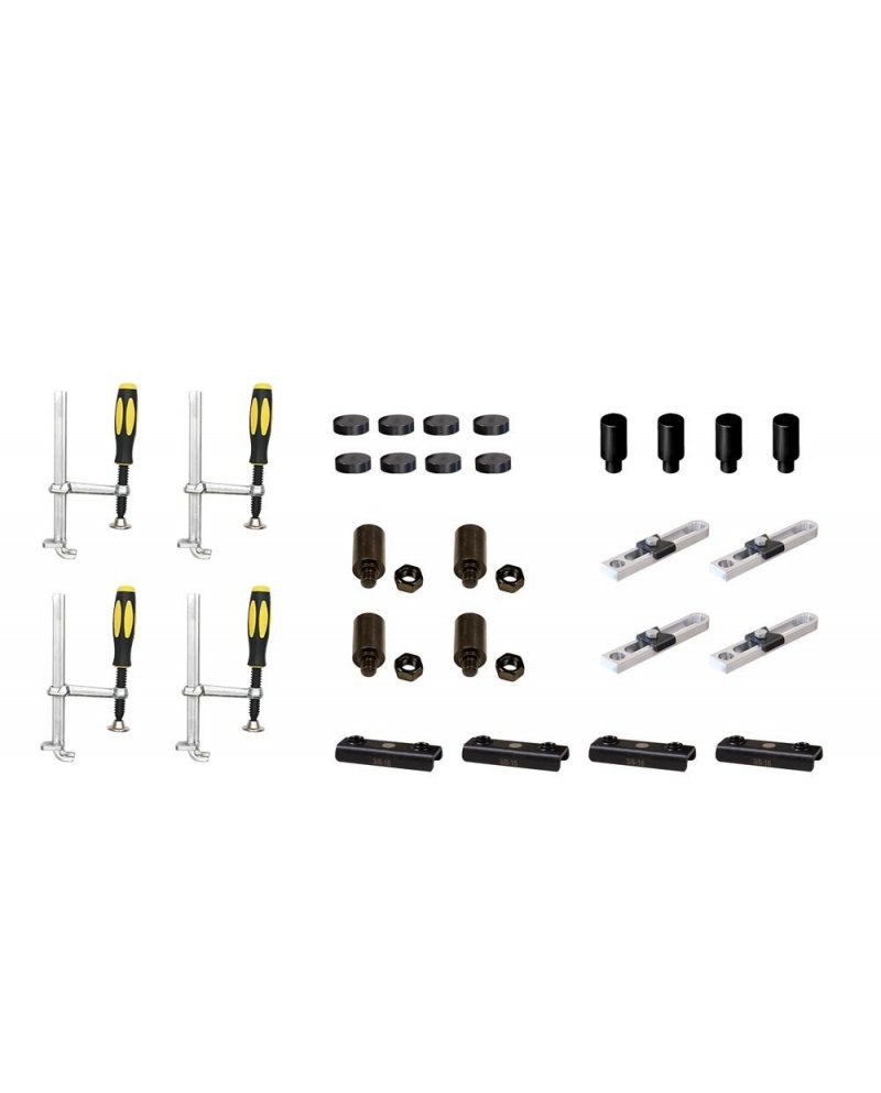 Kit de 32 acessórios para tubos quadrados composto por: