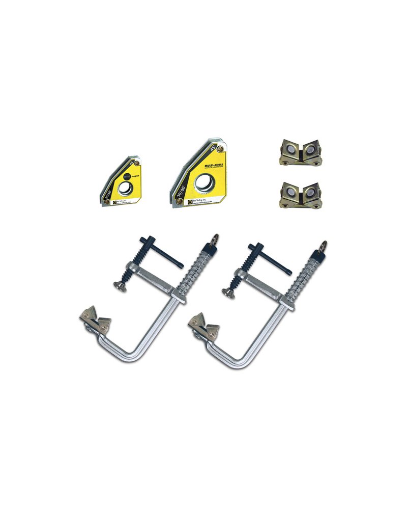 Kit de ferramentas magnéticas ideal para prender e posicionar as peças de trabalho na bancada de soldadura.