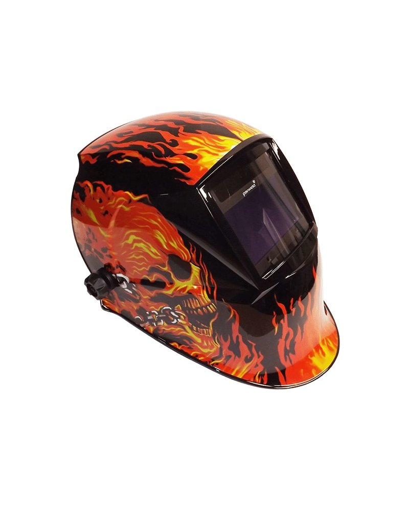 Características: - Ajuste automático de luz para escuro (1/30.000s); - Bateria embutida; - Cobertura facial total; - Modo "Grinding"; - Dimensão dos policarbonatos interiores: 57x105mm; - Dimensão dos policarbonatos exteriores: 105x115mm; - Controle de sombra DIN9-13; - Botão ON/OFF automático. - Norma : BS EN 379: 2003 + AI: 2009, BS EN 175: 1997, EN 166: 2002