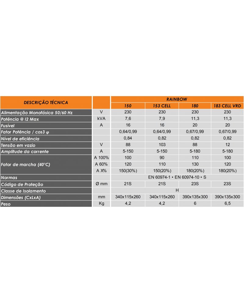 • Excelentes caracteristicas de soldadura, com qualquer tipo de elétrodo;