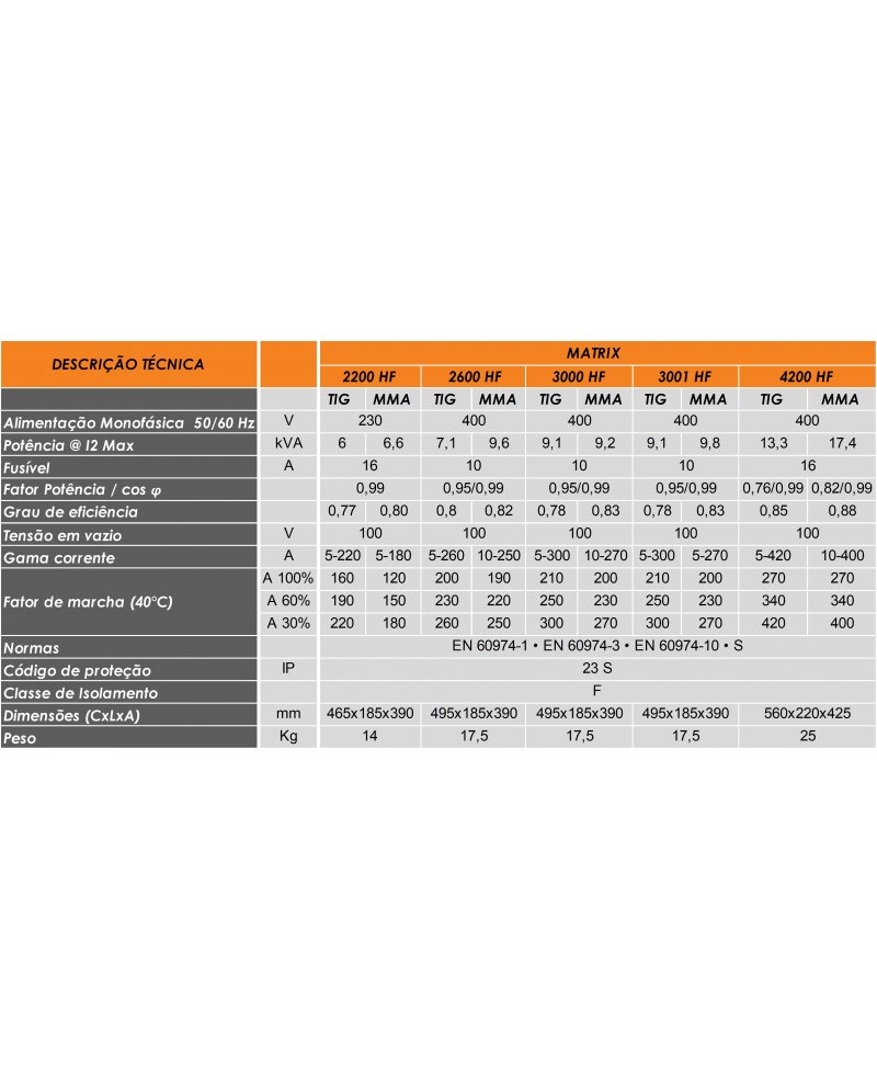 - Equipamento potente, prático, compacto e leve. O dispositivo PFC (Power Factor Correction) otimiza o consumo energético. A função avançada e a fácil utilização do controlo digital permite uma perfeita e extraordinária estabilidade dos parâmetrs de soldadura, garantindo, assim, uma soldadura TIG e MMA com características de elevada qualidade com quaisquer elétrodos. Ideal para todas as aplicações de soldadura e trabalhos de manutenção, sempre que sejanecessária potência e portabilidade. A versão com saída DC, permite a soldadura TIG de aços macios e inoxidáveis, cobre e suas ligas.