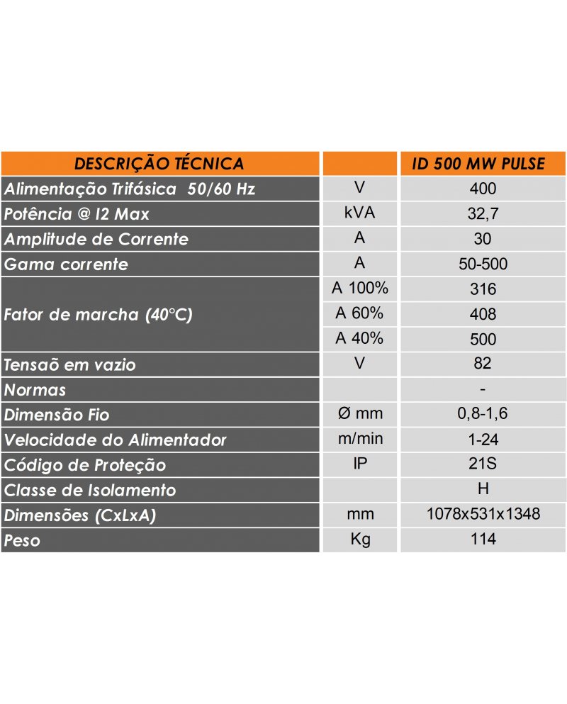 EQUIPAMENTO MIG/MAG ID 500 MW PULSE EXPERT: