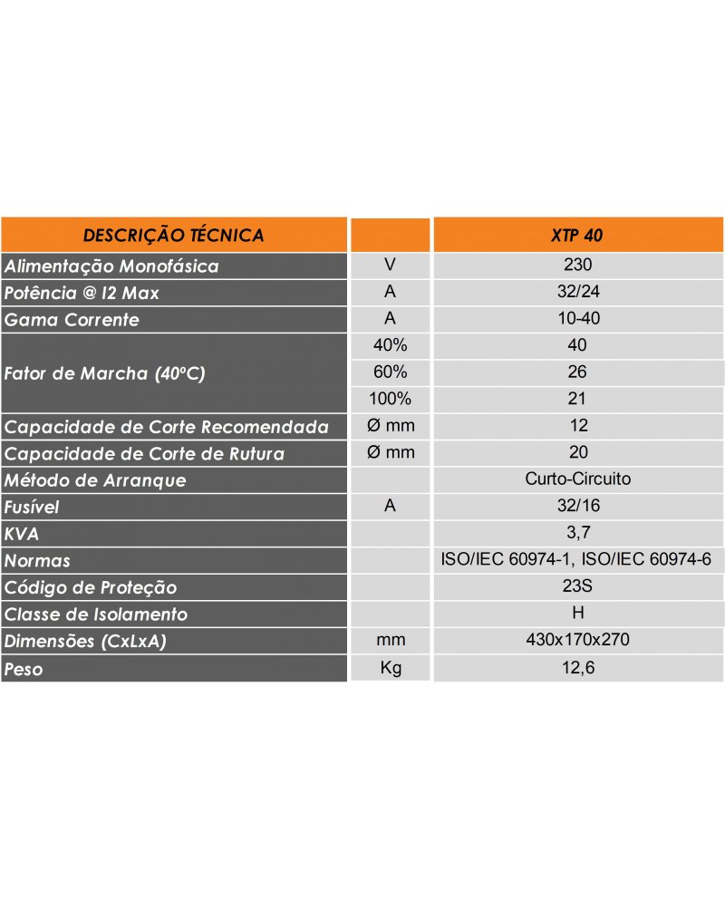 EQUIPAMENTO INVERTER PLASMA XTP 40: