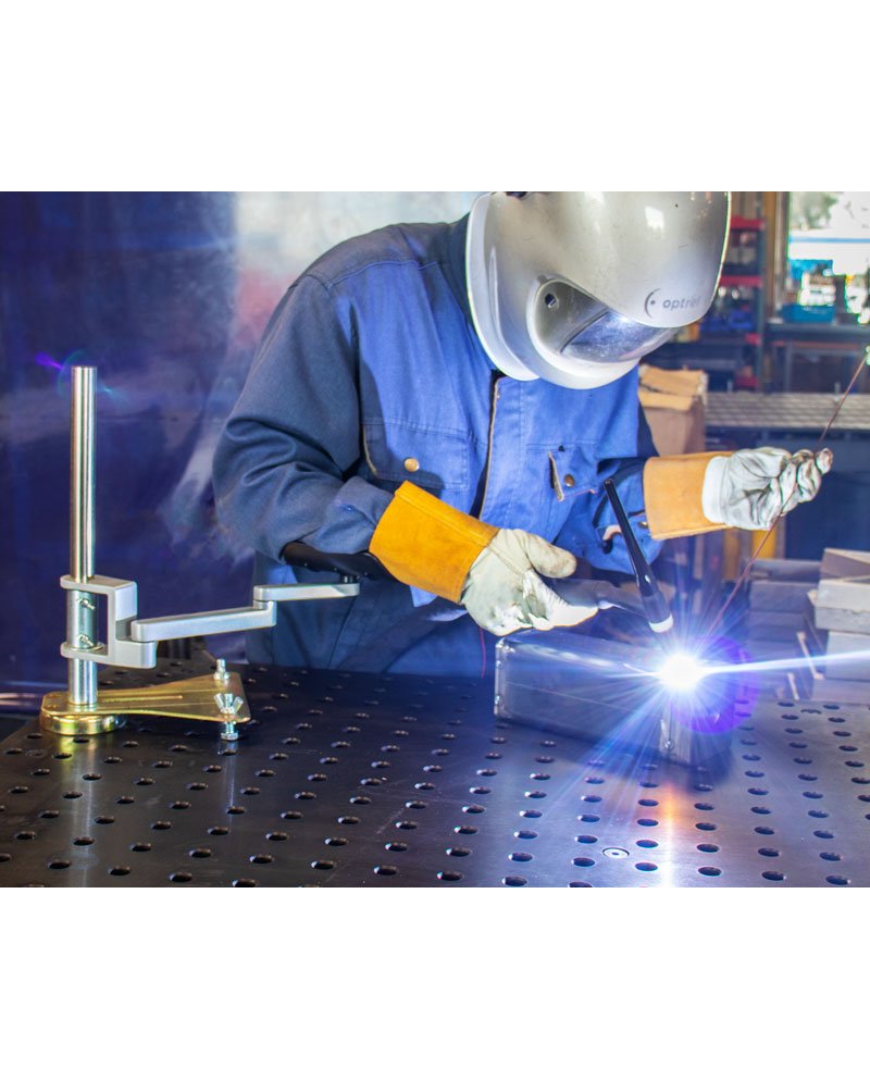 Suporte de braço articulado com base magnética para maior qualidade de trabalho durante a soldadura. O descanso de braço é totalmente ajustável e articulado, o que permite manter firme efixo o braço e a mão. O braço articulado de 2 seções é ajustável em altura (a coluna de suporte desliza para cima ou para baixo) e gira de forma rápida e fácil para um trabalho preciso.